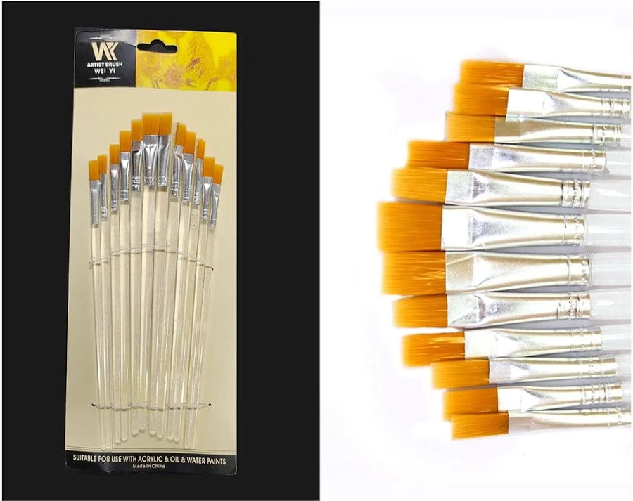 Crafted with high-quality synthetic bristles and durable transparent handles, these brushes are not only functional but also aesthetically appealing. The clear handle design adds a modern, stylish touch to your art supplies while allowing a comfortable grip for long creative sessions. If you are looking for reliable, affordable, and multi-purpose brushes for detailed and broad strokes alike, this 12-piece flat brush set is the perfect solution.
