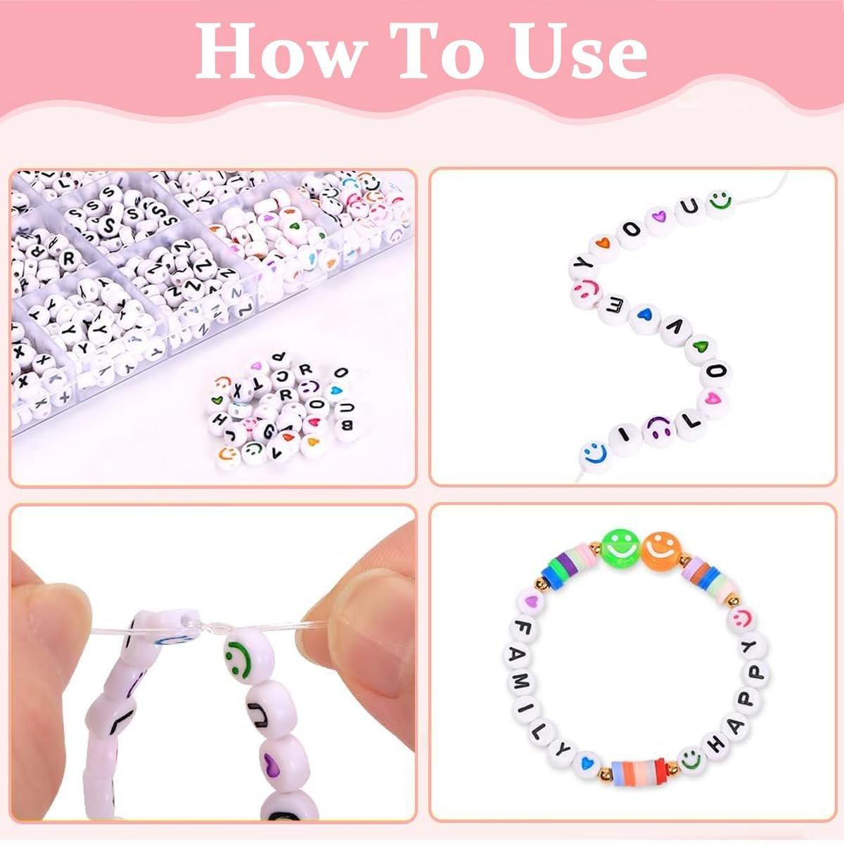 • VARIETY OF BEADS FOR DIY: The Alphabet beads for bracelet kit includes A to Z 26 letter beads so you can spell out meaningful words or names in your designs. Also includes smiley face beads and colorful heart beads, 3 kinds of beads combinations for jewelry that will easily show off your unique style and personality!