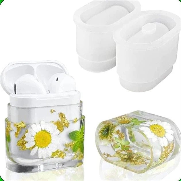 Create beautiful and customised AirPods protective covers with this high-quality AirPods Cover Resin Casting Mould. Designed for resin artists, DIY crafters, and handmade product sellers, this durable silicone mould allows you to craft stunning resin AirPods cases with flowers, gold flakes, glitter, pigments, dried leaves, and other decorative elements.