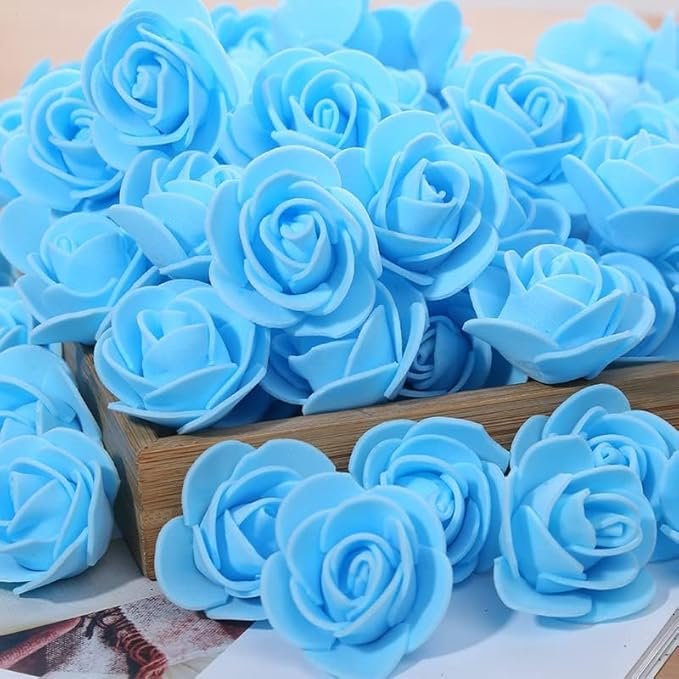 Artificial Foam Rose Flower – Sky Blue (100Pcs)