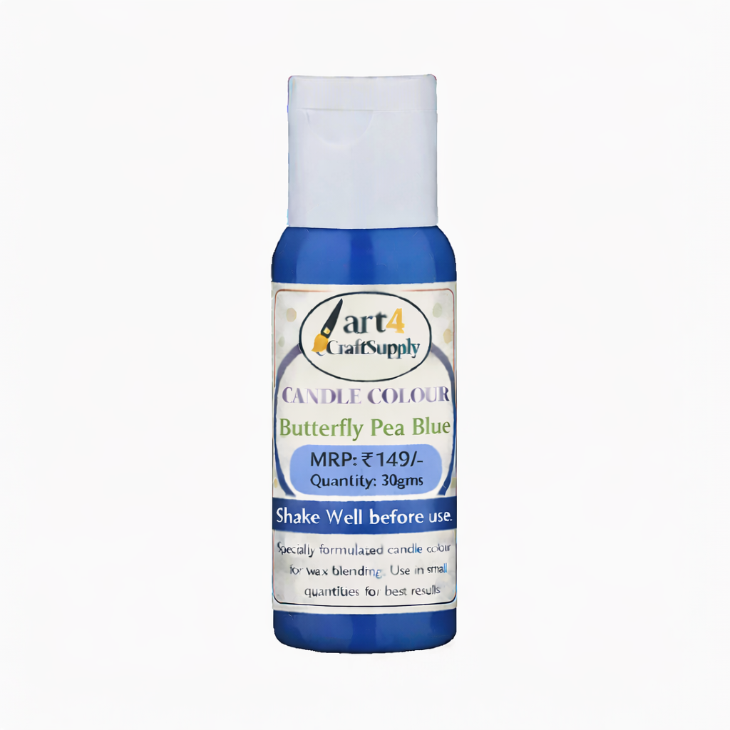 Butterfly Pea Blue Candle Colour is a specially formulated candle pigment designed to blend smoothly into wax. The shade ranges from soft botanical blue to deep royal blue, depending on dosage and wax used.