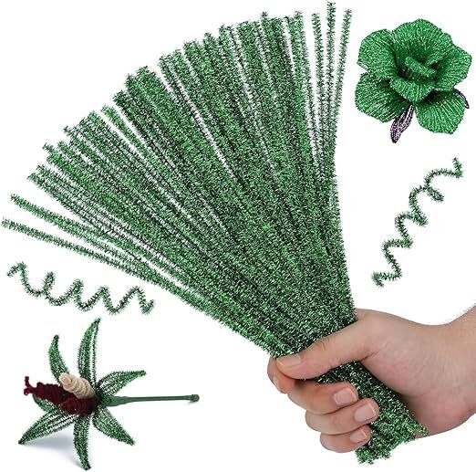 Craft Pipe Cleaner for Hobby Crafts, Scrapbooking, DIY Accessory, Sparkled Pipe Cleaners(Green, 12-inch) -Set of 100