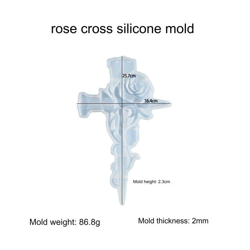Durable, reusable, and easy to clean, the Cross With Rose Silicone Mould is designed for repeated use and bulk production, making it a valuable addition to any faith-based craft or resin art collection.