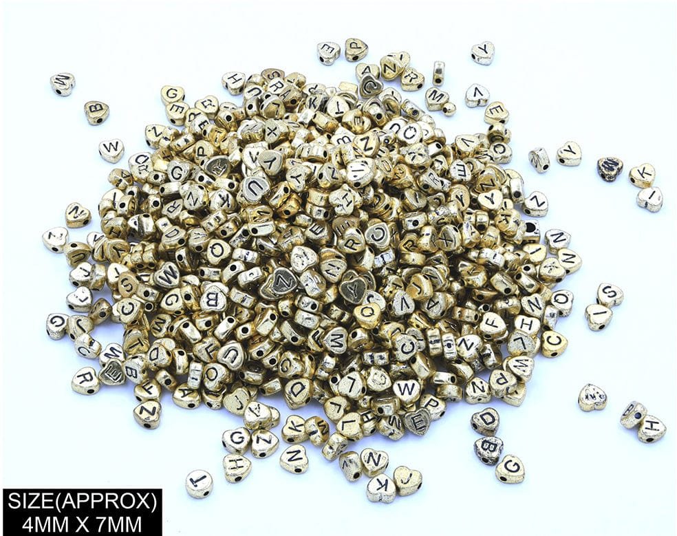 heart alphabet beads, ABCD heart beads, gold black alphabet beads, heart letter beads, jewellery making alphabet beads, personalized name beads, DIY craft beads